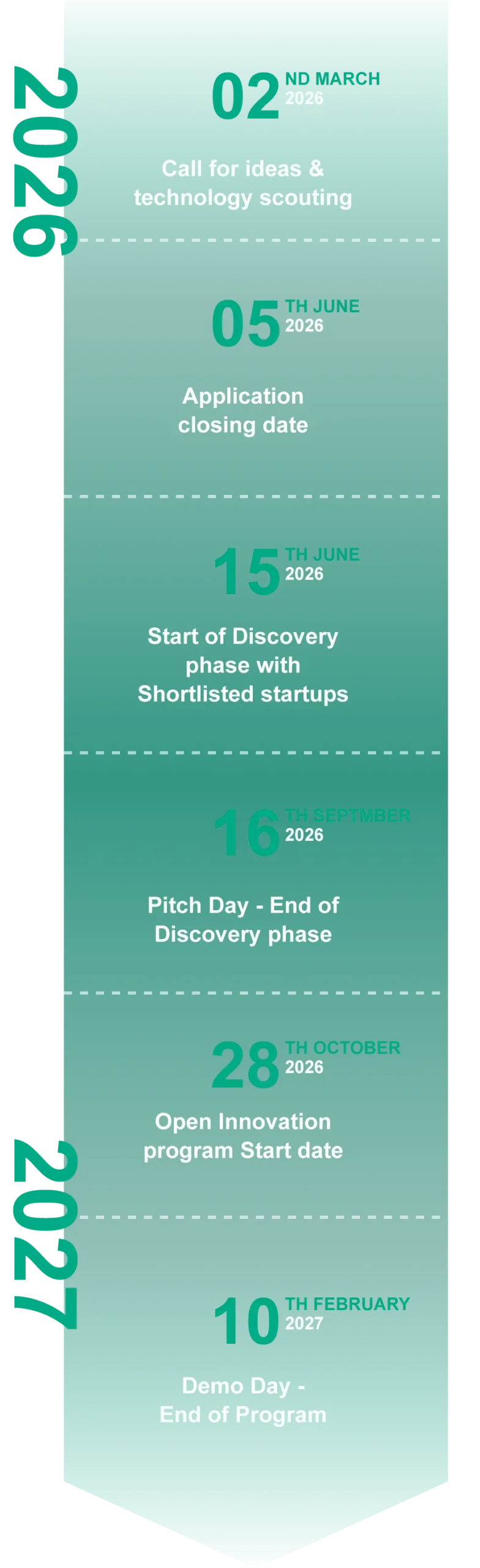 3. Third phase: during the Discovery phase, selected teams receive our Term Sheet and, once accepted, will access the Selection Day. Following the Selection Day, the Executive Committee will take the final decision on the startups that will access the Open Innovation Program
